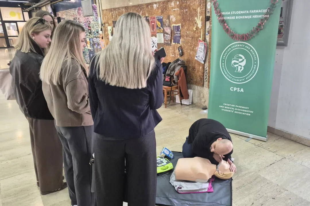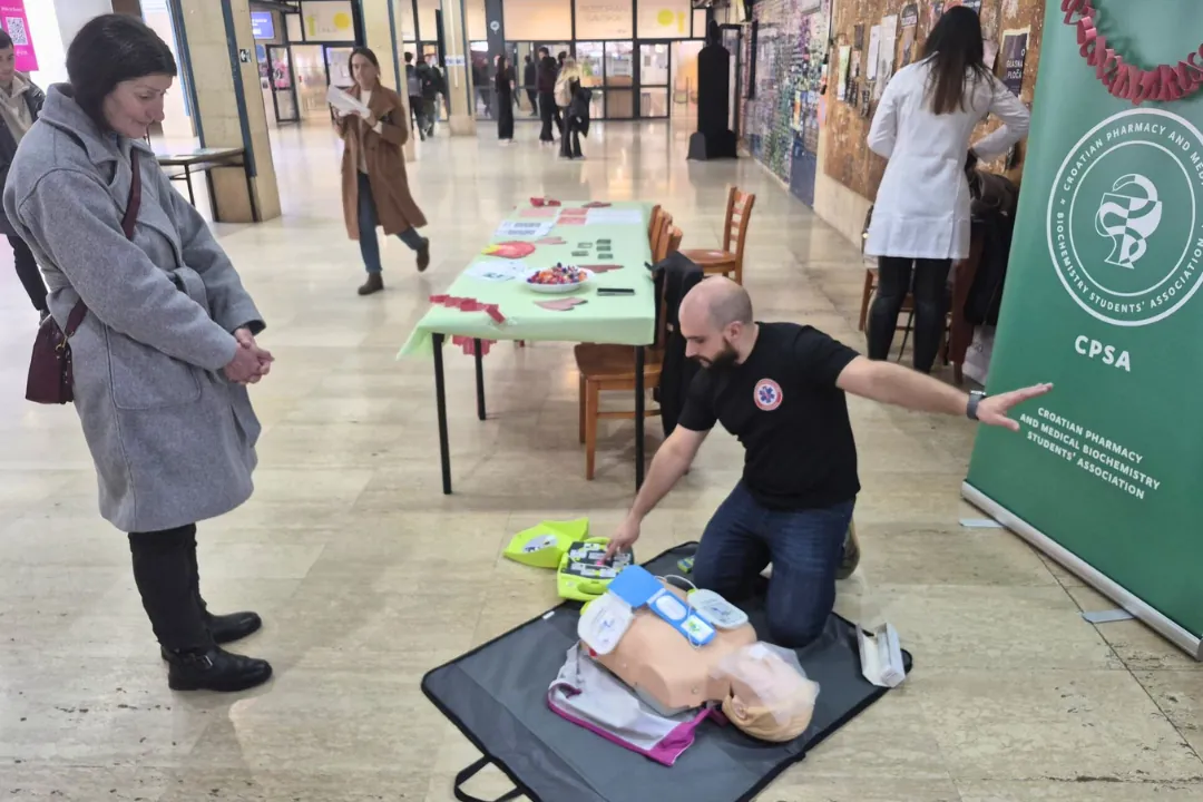 Hrvatski zavod za hitnu medicinu (HZHM) podržao je javnozdravstvenu kampanju Udruge studenata farmacije i medicinske biokemije Hrvatske (CPSA) koju je njihov tim za javno zdravstvo proveo u srijedu, 25. veljače 2026., u predvorju Studentskog centra u Zagrebu. Cilj kampanje bio je informiranje i osvještavanja studenata o važnosti uporabe automatskog vanjskog defibrilatora (AVD) za preživljenje iznenadnog srčanog zastoja, kao i o laboratorijskim pretragama koje prethode uzimanju hormonske kontracepcije u žena.